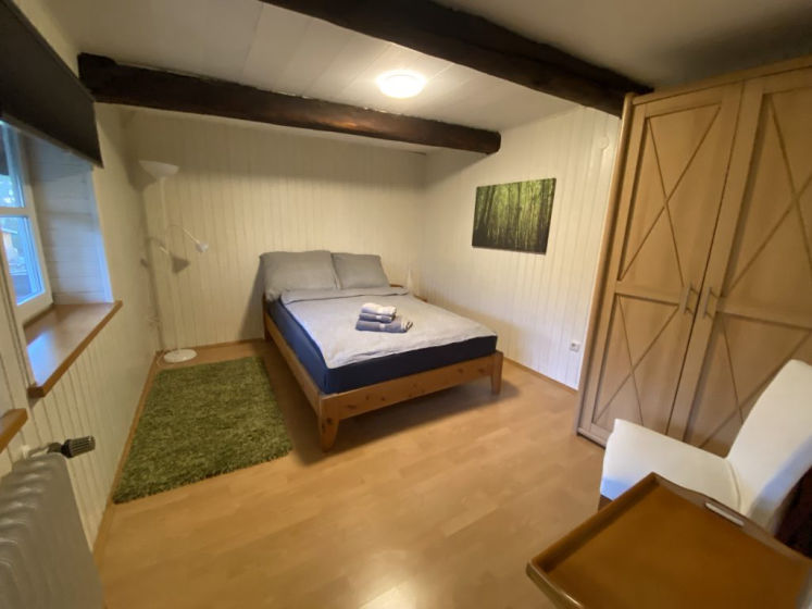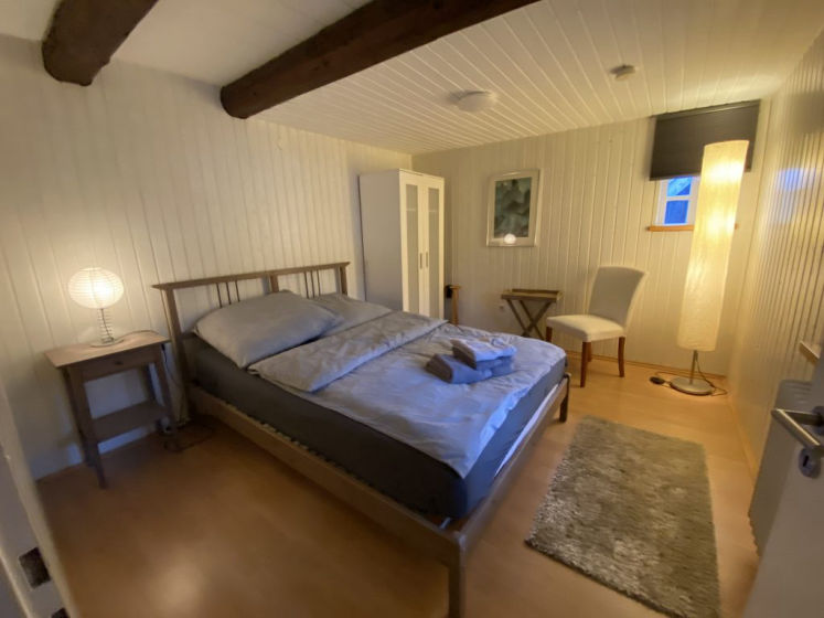 Diese Ferienwohnung ist für 1 - 5 Personen geeignet und verfügt über zwei Schlafzimmer mit je einem 140 x 200 cm Doppelbett, Schrank, Kofferbock sowie einen Schreibtisch mit Stuhl. Das Sofa im Wohnbereich kann ebenfalls zu einem Bett mit 140 x 200 cm ausgezogen werden.